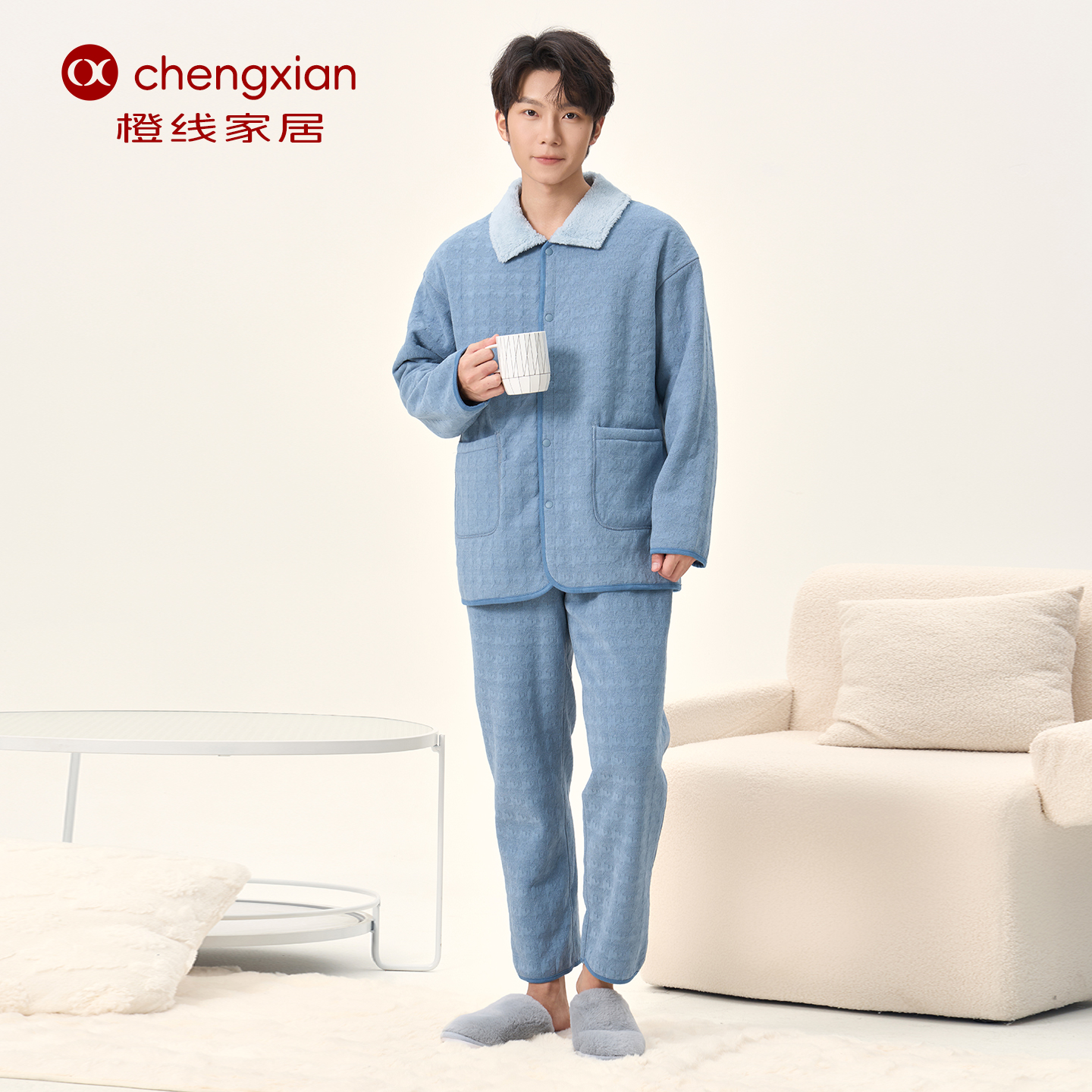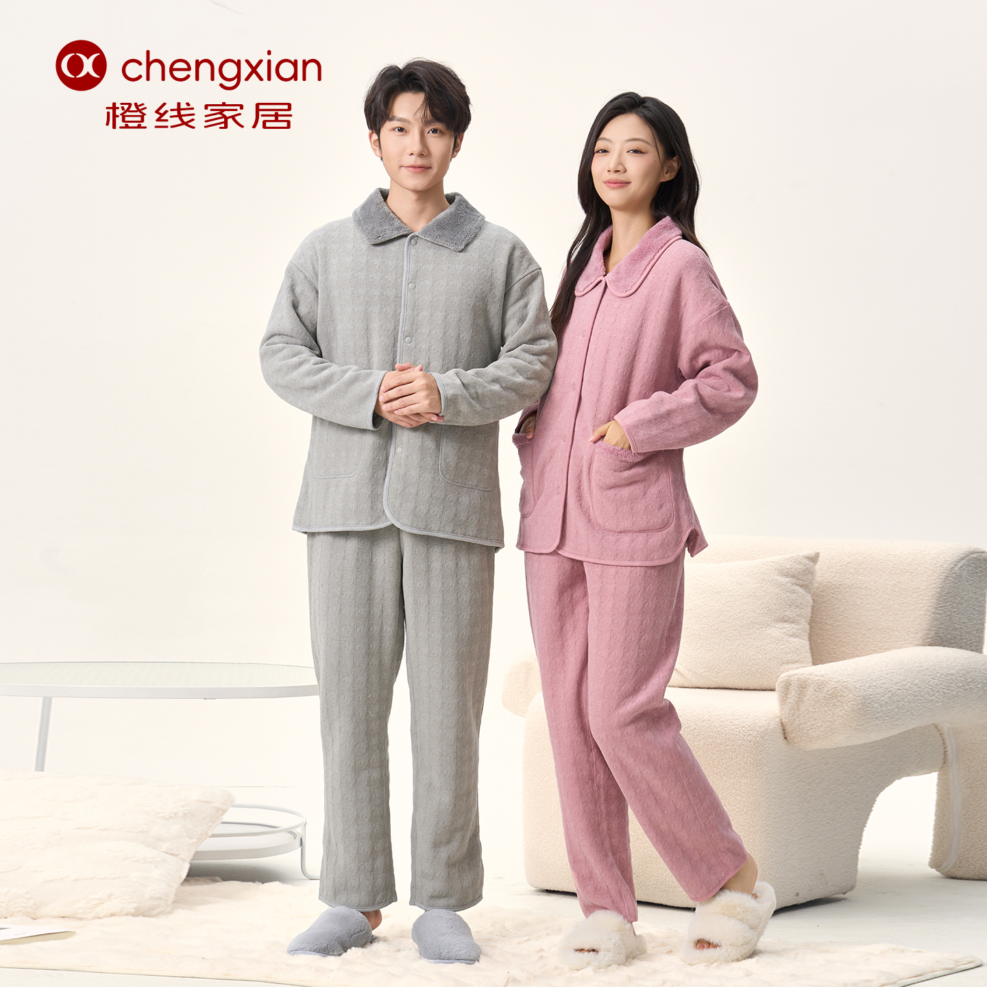 雪尼尔双面穿秋冬款 睡衣套装 橙线情侣款 家居服E22076 直播