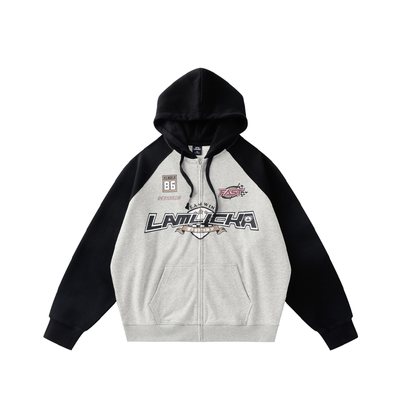 nice r.系列500G全棉磨毛针织拉链休闲连帽卫衣NEQ04009 rice好饭