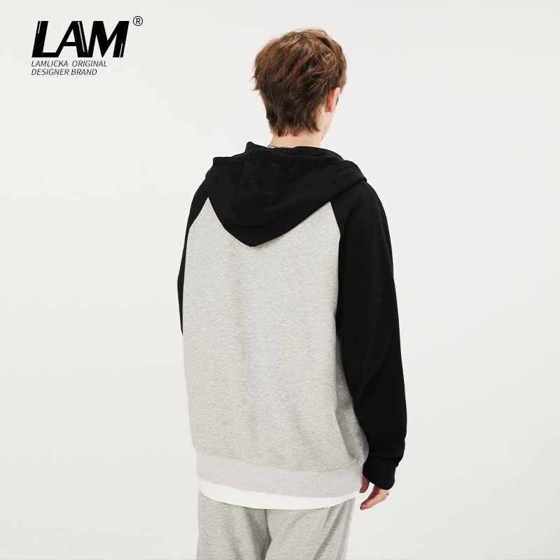 潮牌街头宽松运动帽衫 秋季 外套 重磅复古灰色连帽卫衣男款 V37美式