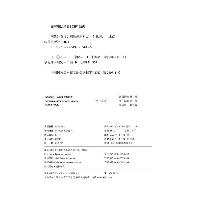 法律出版 正版 付祎 网络涉毒行为刑法规制研究 社9787519785185 2023新书
