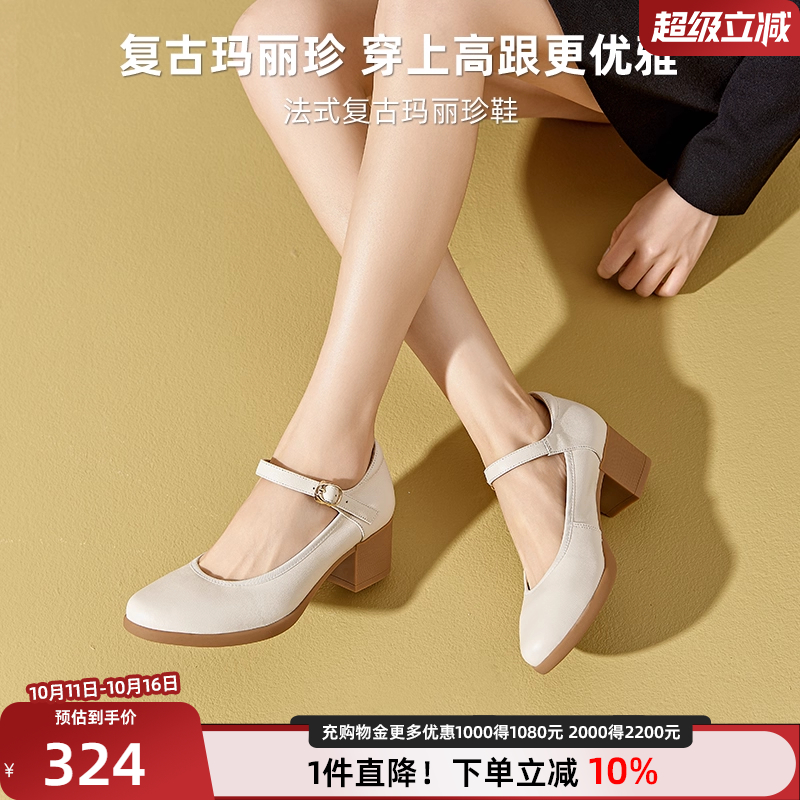 女中跟2025新款 玛丽珍鞋 真皮法式 搭配裙子妈妈小皮鞋 头层牛皮