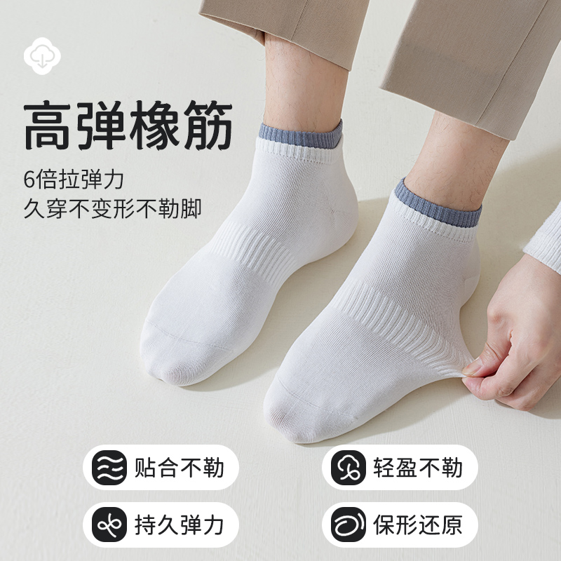 男生防臭透气吸汗白色男士 纯棉款 袜子男短袜春秋季 船袜 7A抗菌
