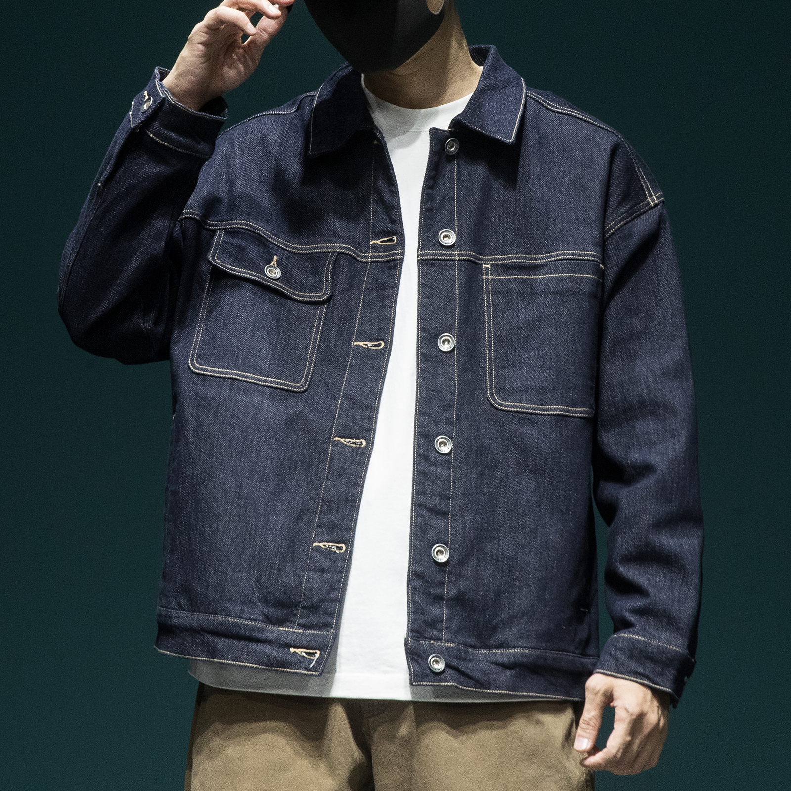 潮牌翻领工装 胖子美式 外套上衣 宽松大码 高端原色水洗牛仔夹克男士