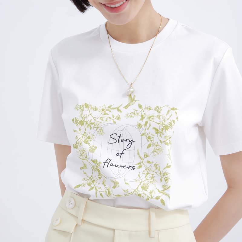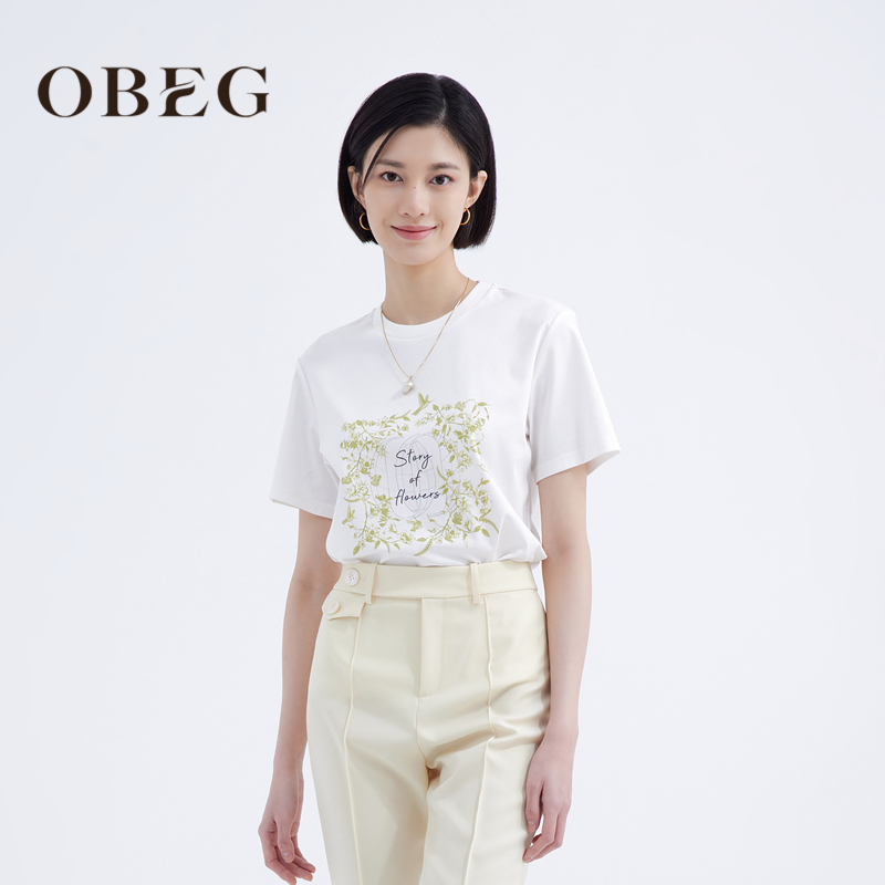 OBEG欧碧倩撞色印花T恤女丝光棉质舒适短袖 减龄百搭10442113