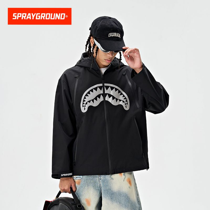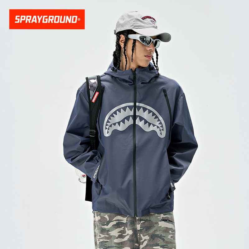 SprayGround新款 外套 鲨鱼嘴反光炫彩冲锋夹克男户外潮流情侣同款
