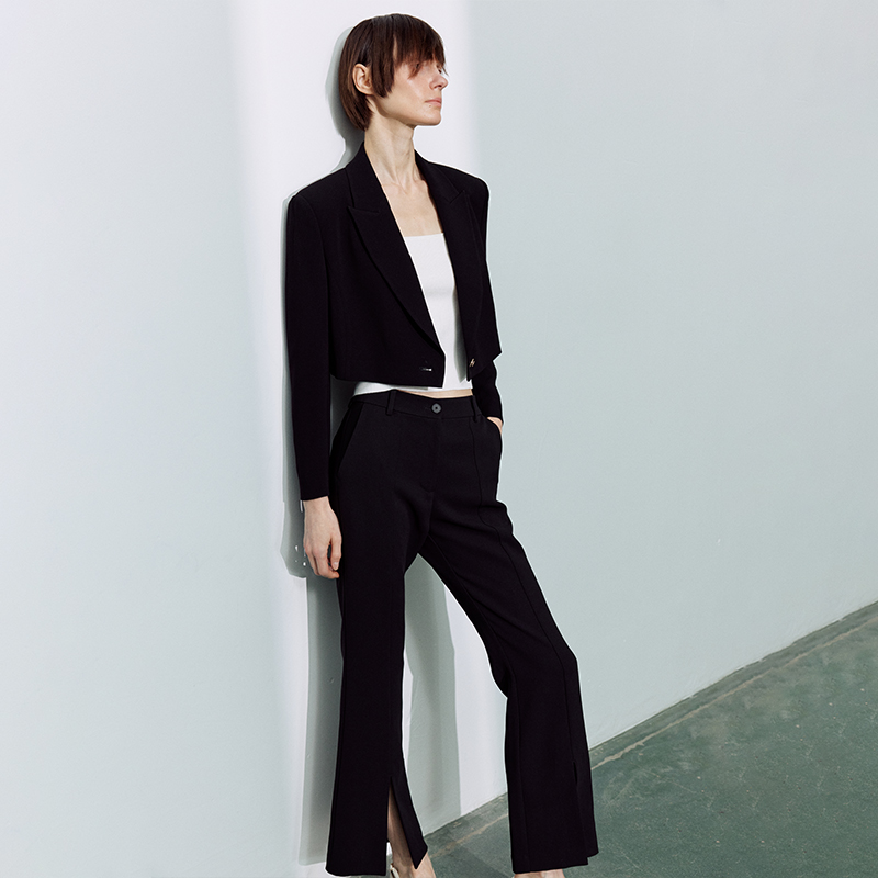 女春秋新款 休闲直筒慵懒松弛感裤 高腰垂感窄版 裤 子 西装 黑色阔腿裤
