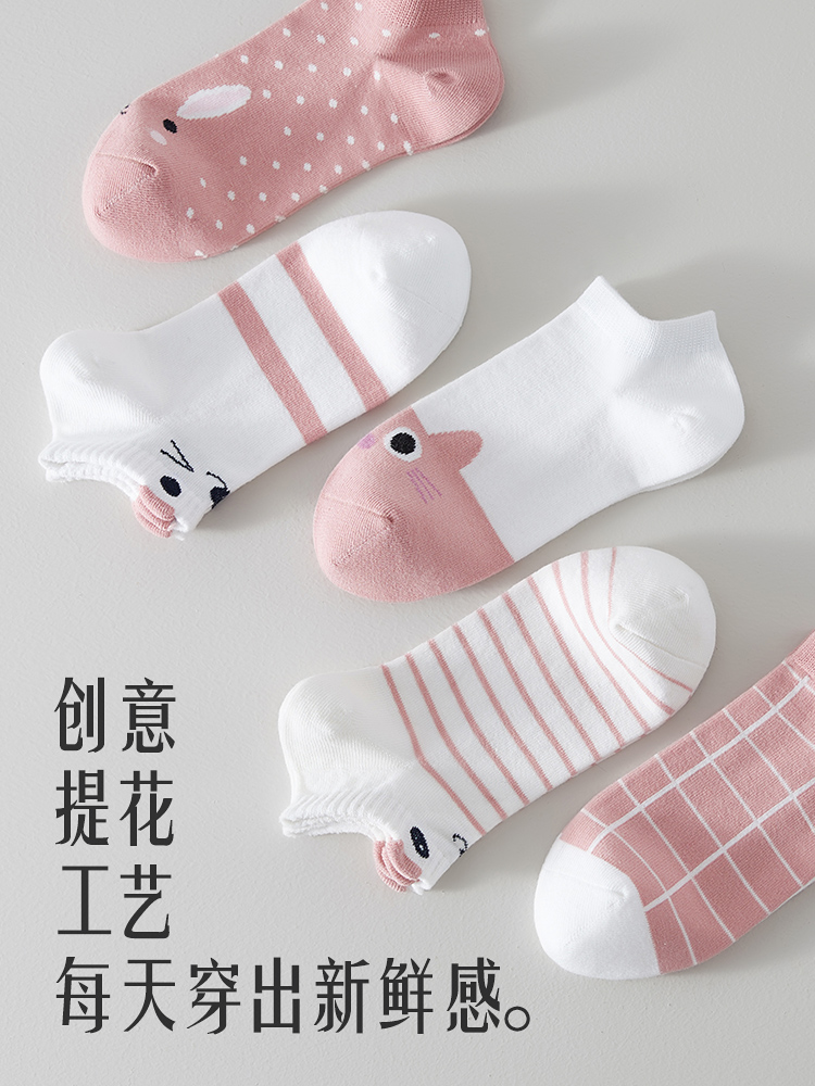 袜子女船袜防滑不掉跟夏季 网眼纯棉浅口隐形袜夏天多巴胺短袜 薄款