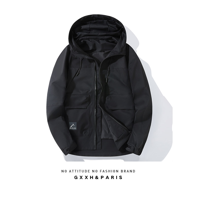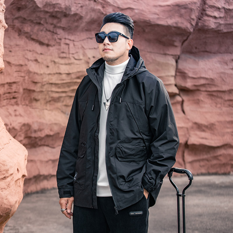 新款 GxxH大码 外套胖子春季 潮流休闲美式 防风连帽百搭夹克上衣 男装