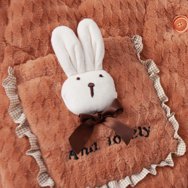 大码 春秋开衫 女士家居服 加厚珊瑚绒睡衣女冬法兰绒加绒套装 秋冬季