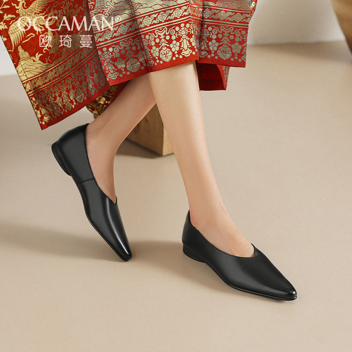 浅口尖头单鞋 软底女鞋 女2025秋季 真皮低跟气质平底小皮鞋 新款 法式