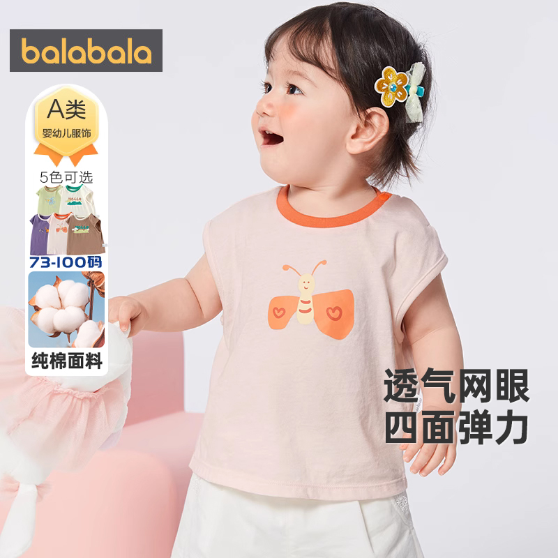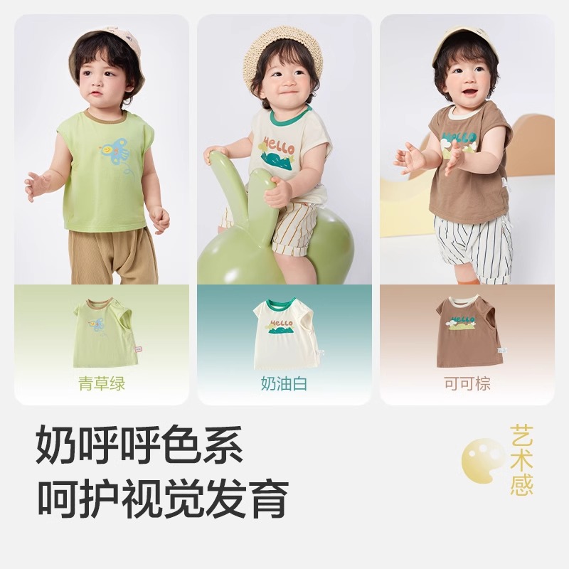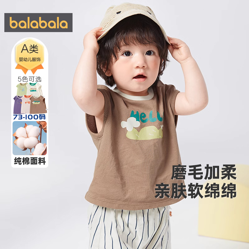 上衣薄孩 男童女童无袖 巴拉巴拉儿童背心婴儿宝宝纯棉t恤夏季 新款