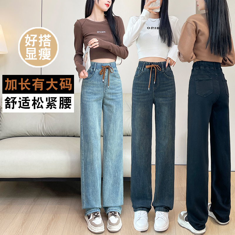 高腰超长裤 加长窄版 胖MM加肥大码 女175高个子直筒裤 子 阔腿牛仔裤
