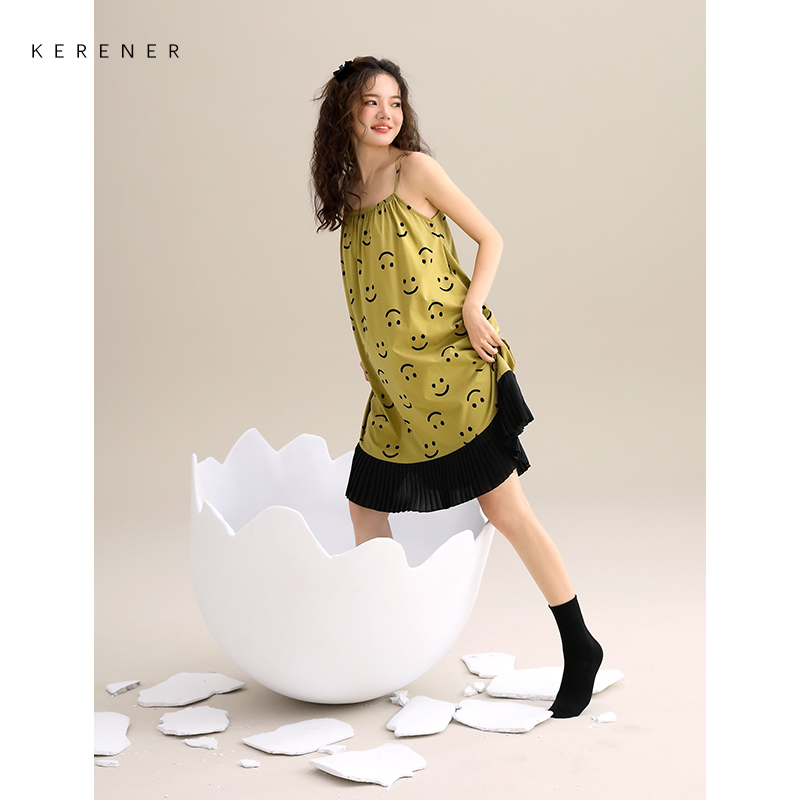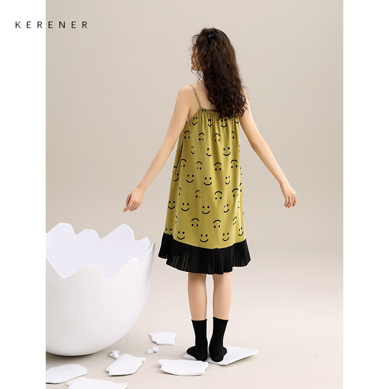 可人儿夏季 凉感纯棉睡衣性感吊带连衣裙可爱少女可外穿家居服睡裙
