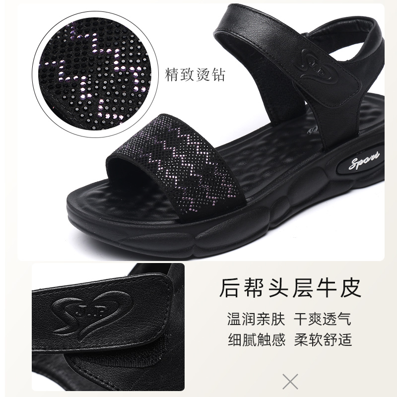 女鞋 青年真皮平底大码 清仓 女软底防滑学生沙滩鞋 旺奈运动休闲凉鞋