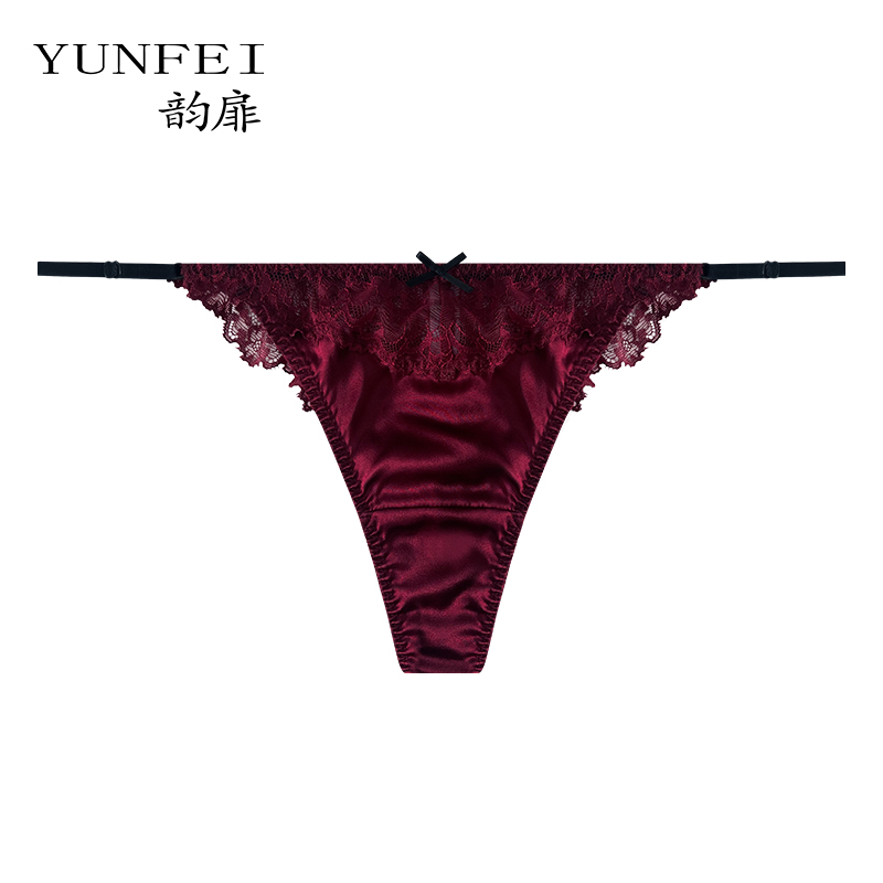 韵扉高端桑蚕丝女火辣性感真丝女士内裤 头 蕾丝低腰高级真丝丁字裤