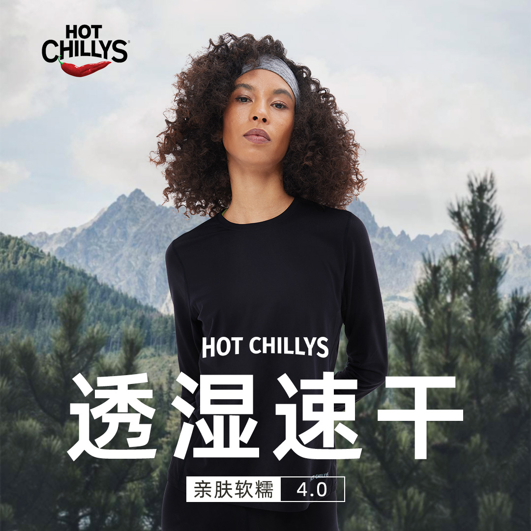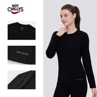 Hotchillys红辣椒桃皮女户外功能内衣训练运动圆领保暖速干上衣