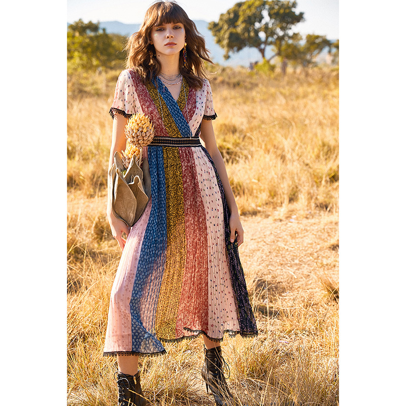 扭结连衣裙气质优雅长裙宴会礼裙 复古V领长袖 韩语琳 法式