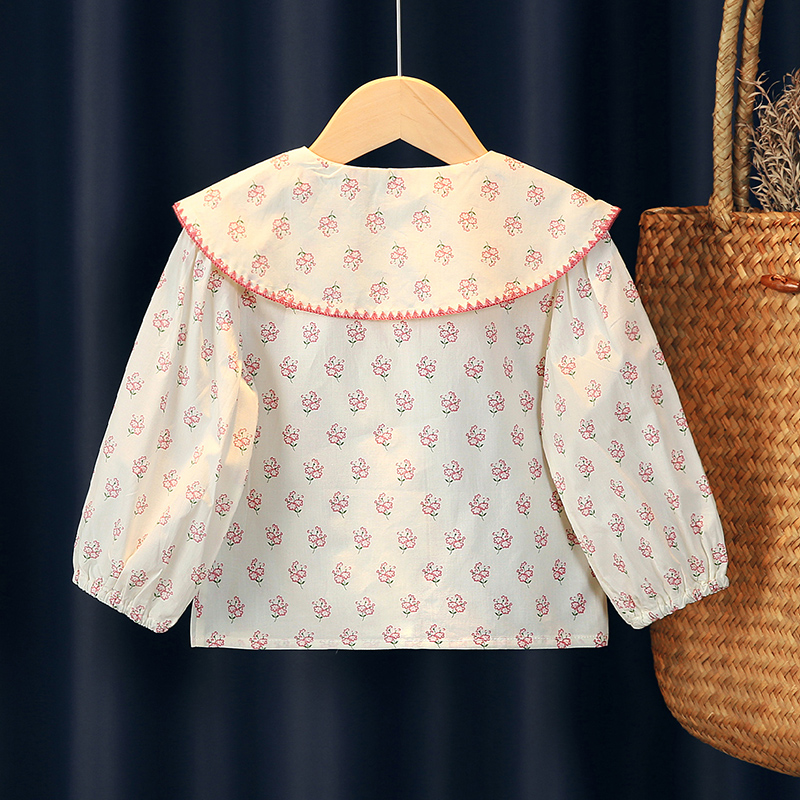 2025韩版 春秋款 纯棉上衣女宝宝洋气娃娃领小碎花衬衣 衬衫 女童长袖