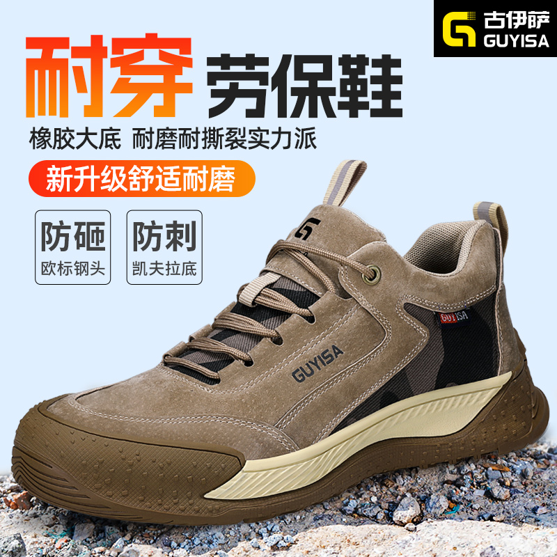 古伊萨劳保鞋 工地防砸防刺穿钢头带钢板老保耐磨绝缘安全工作 男款