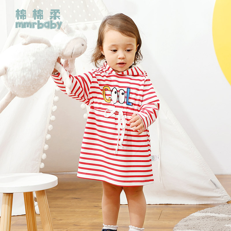 春装 女童裙子春秋女宝宝连衣裙春季 儿童条纹休闲小童连衣裙中长款
