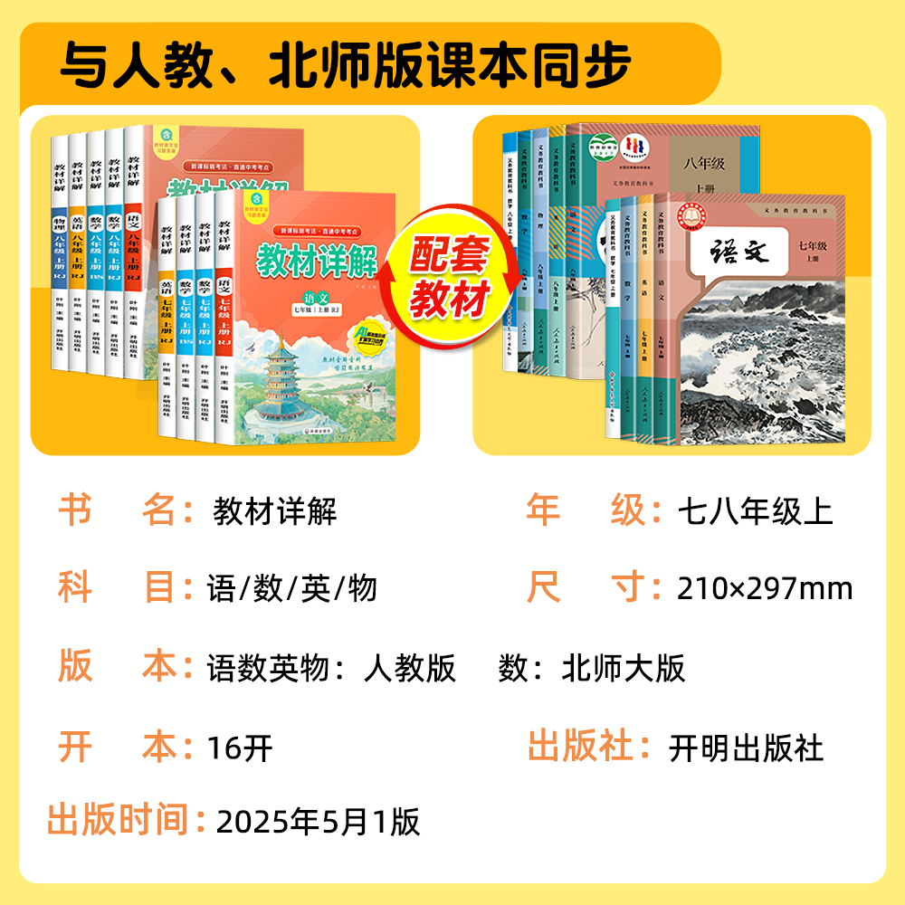 教材详解七八年级上册语文数学英语课本原文同步教材全解详解初一二教辅小升初暑假衔接预习课堂笔记人教版 2025年新版 AI助教