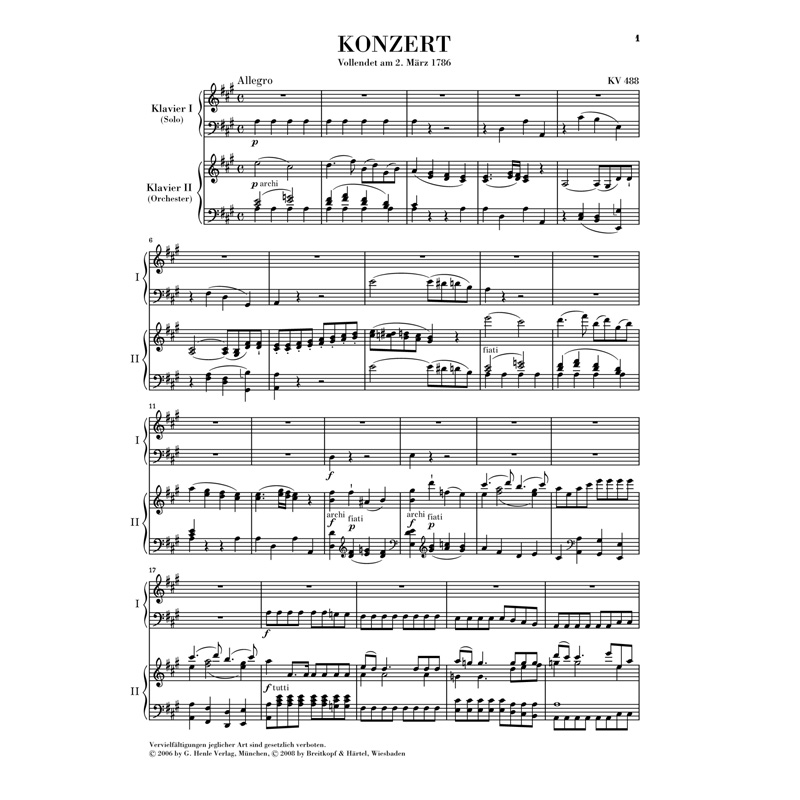 双钢琴 HN767 K.488 Piano 第二十三钢琴协奏曲A大调KV488 含华彩 Concerto 席夫版 带指法 major 莫扎特 亨乐原版 Mozart