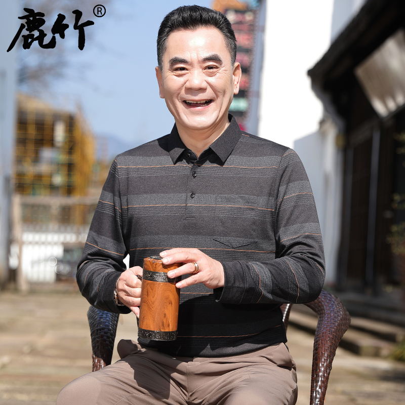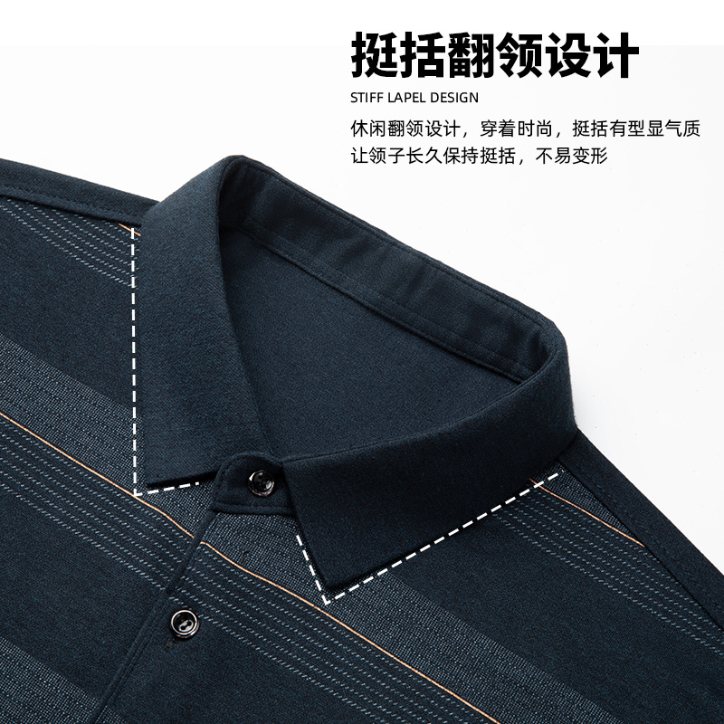 休闲polo衫 春秋款 t恤真口袋中年男士 上衣中老年人爷爷长袖 爸爸装