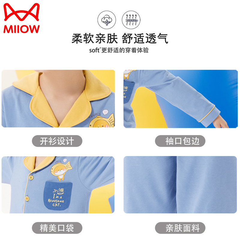 开衫 长袖 2025年新款 大码 猫人纯棉睡衣男士 可外穿家居服套装 春秋款