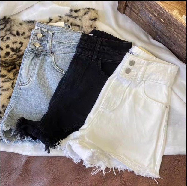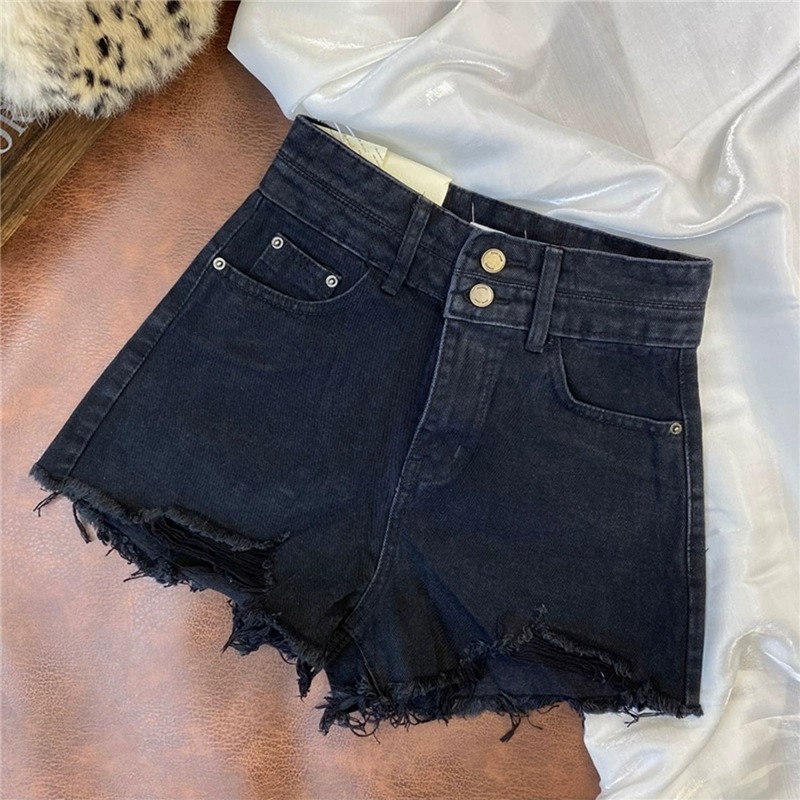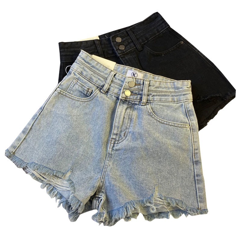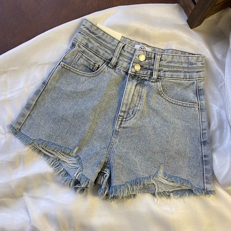 显瘦辣妹高腰a字破洞热裤 小个子薄款 女夏2023新款 浅蓝色牛仔短裤