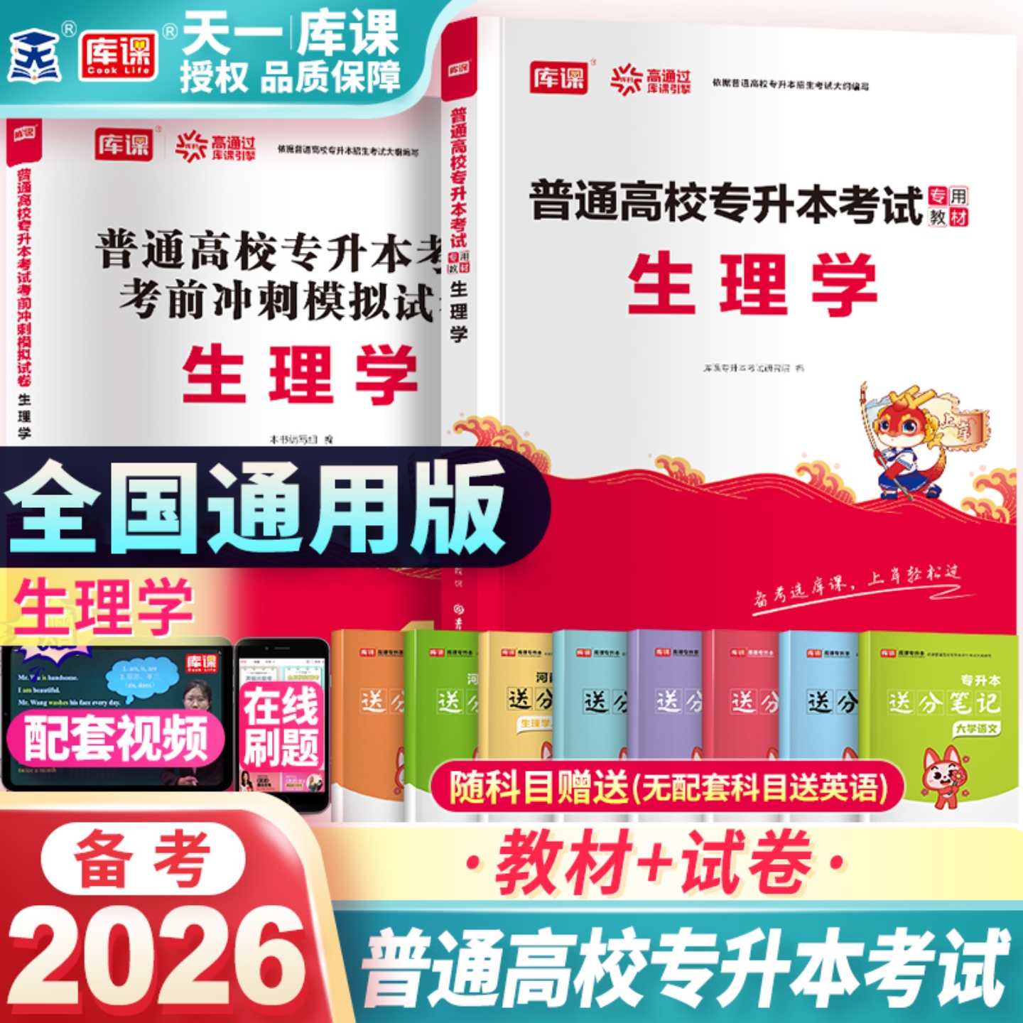 备考2026年专升本生理学教材必刷2000题模拟卷库课专升本复习资料生理学细胞 基本功能血液循环内分泌消化吸收生殖能量代谢与体温
