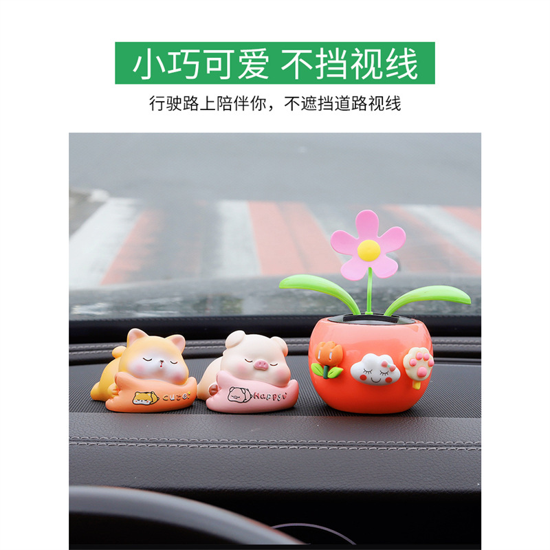 网红汽车内摆件创意可爱太阳能摇头花小车上车载装 饰品太阳花女生