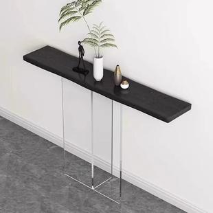 玄关桌子轻奢亚克力靠墙窄自然边原木台入户正对门柜简约现代艺术