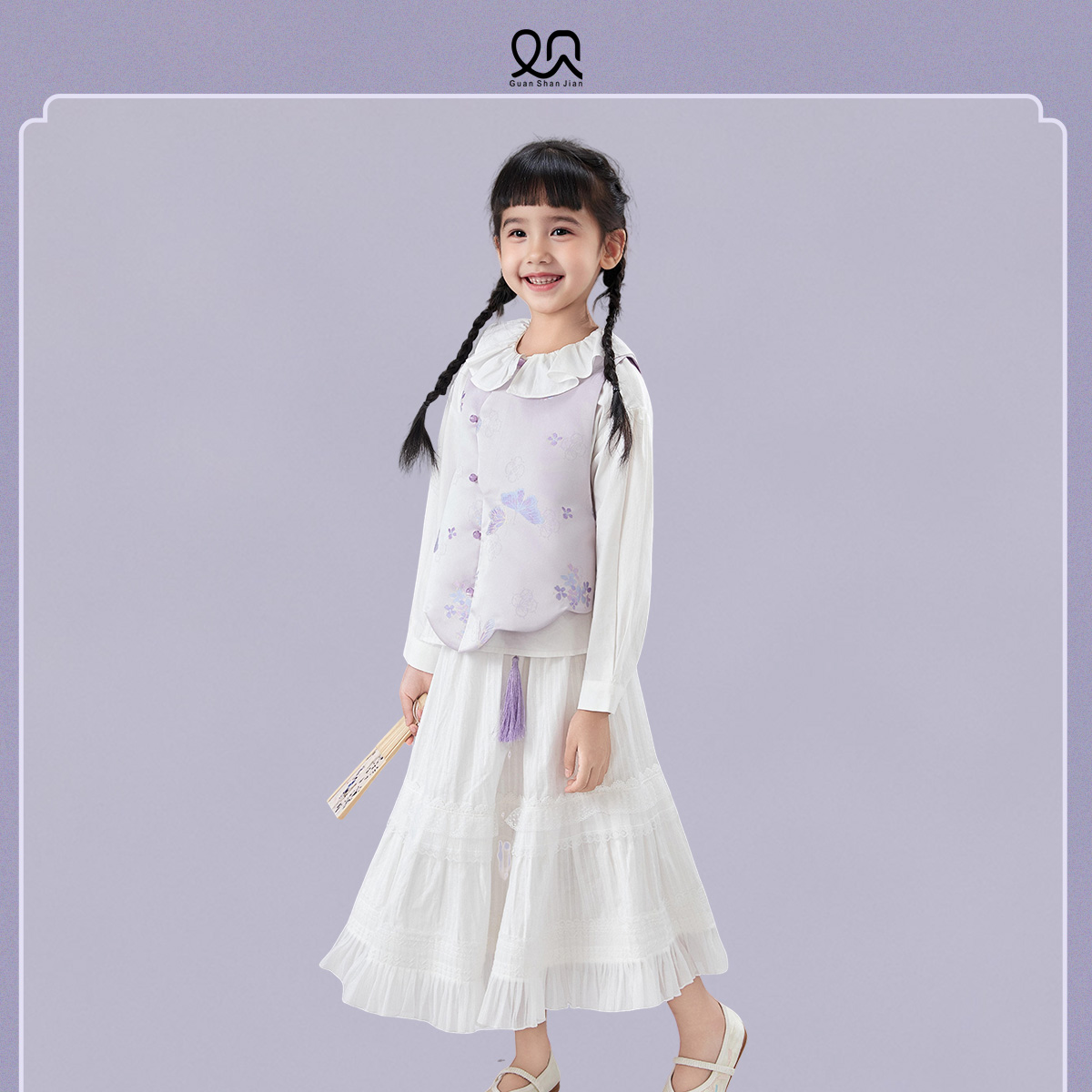 新款 观山见童装 2025秋季 衬衫 儿童国风上衣宝宝纯色衬衣 女童长袖