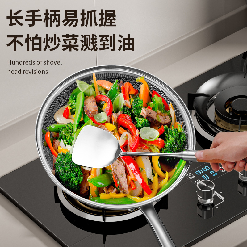 古臻匠不锈钢锅铲炒菜铲子家用厨房套装 长炒勺厨师专用炒铲