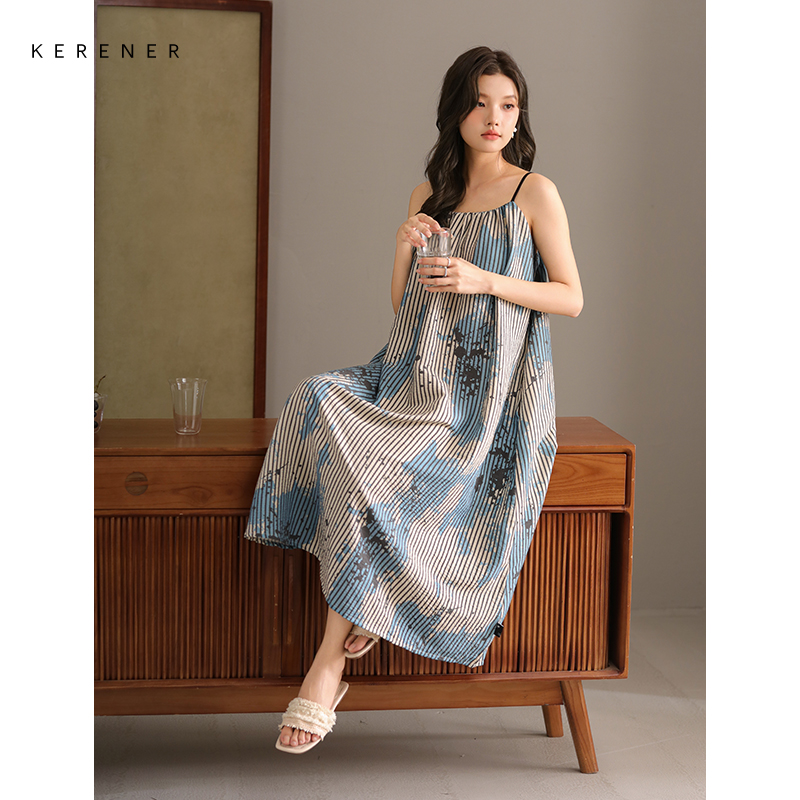 可人儿小众设计师新款 吊带少女带胸垫睡裙家居服 泡泡绵睡衣女夏季