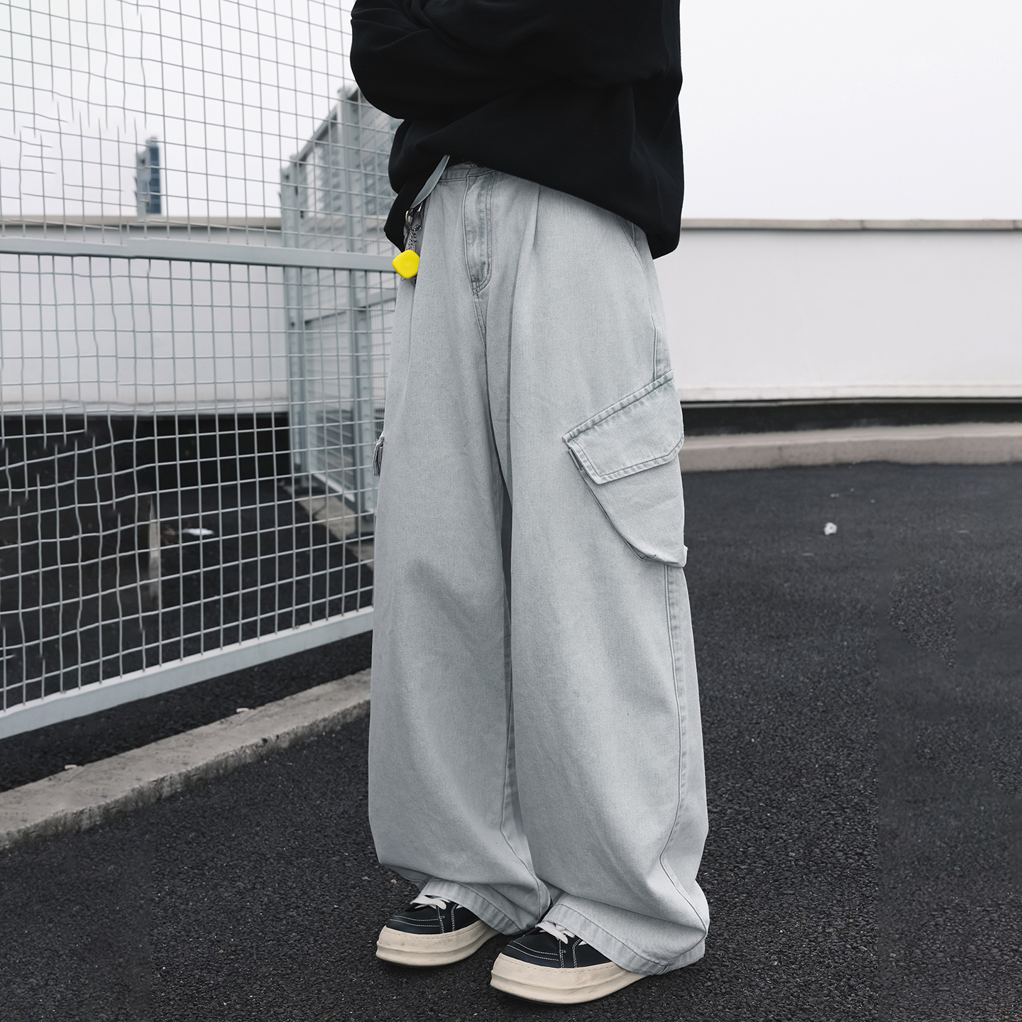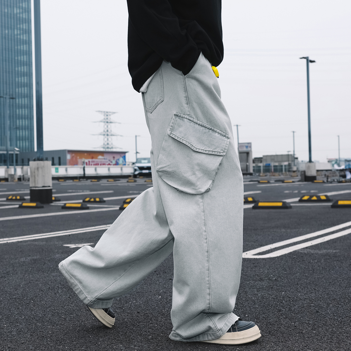 男水洗垂感宽松牛仔阔腿裤 大口袋弯刀裤 LAMLICKA小狗美式 陈赫同款