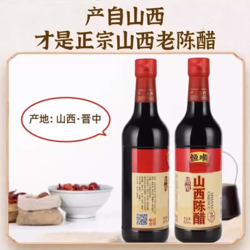 恒顺陈醋山西三年420ml纯粮酿造蘸饺子食醋正宗老陈醋食用家用