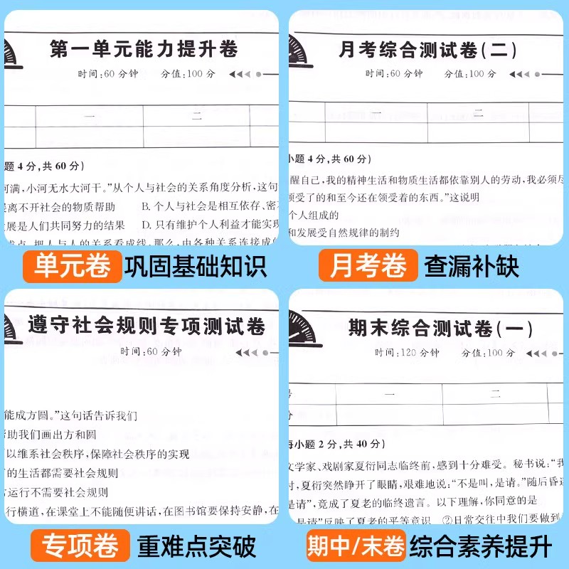 八年级上册试卷测试卷全套语文数学英语道德与法治生物地理历史配套人教版 期末同步练习册下册 8八上初二数学必刷题初中小四门单元