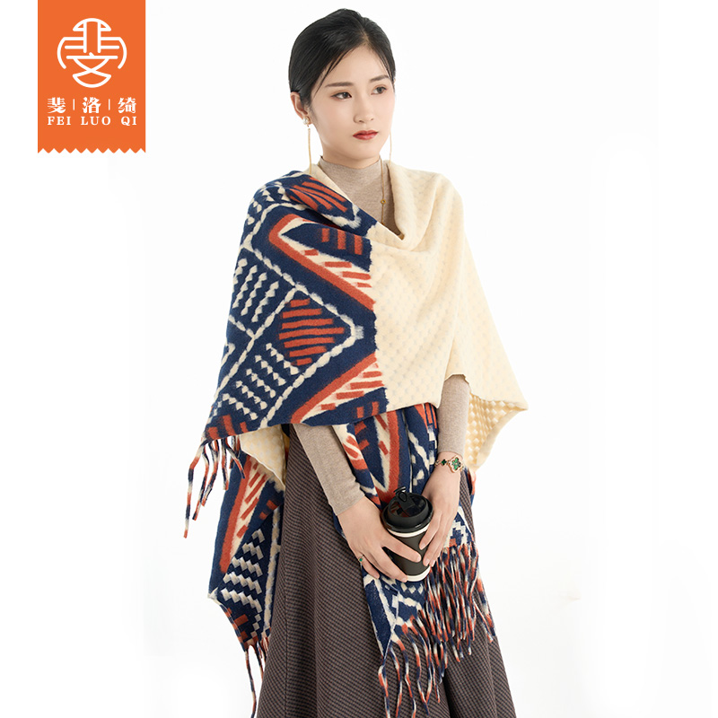 新款 民族风外搭披肩斗篷披风女夏天围巾云南海边拼接穿搭旅游外出