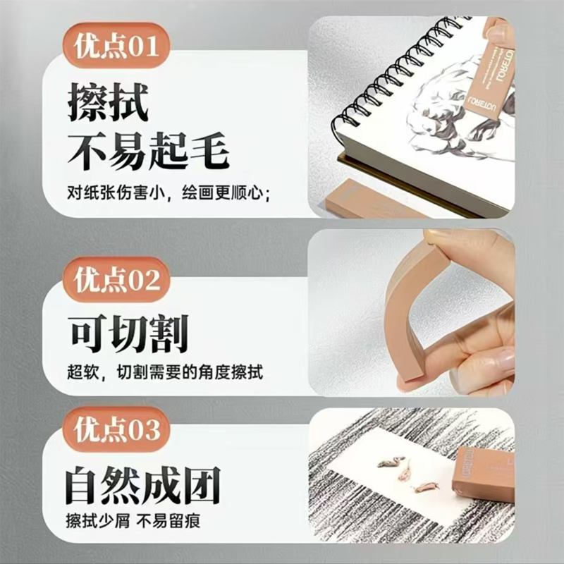 马利素描橡皮美术专用超净美术高光硬软可塑橡皮绘画细节可擦无屑超干净不易留痕小学生幼儿园4b8b好用橡皮笔