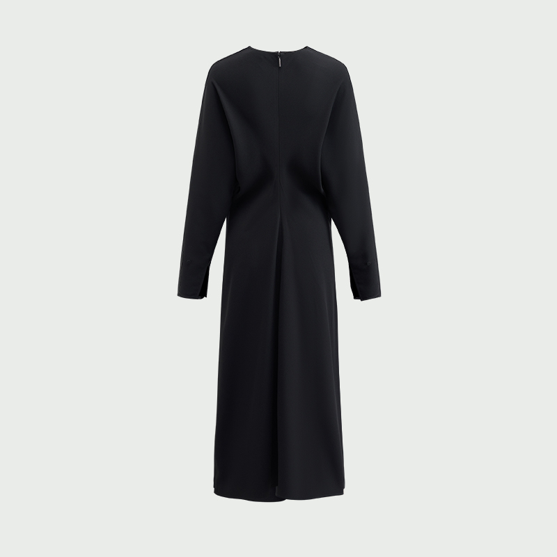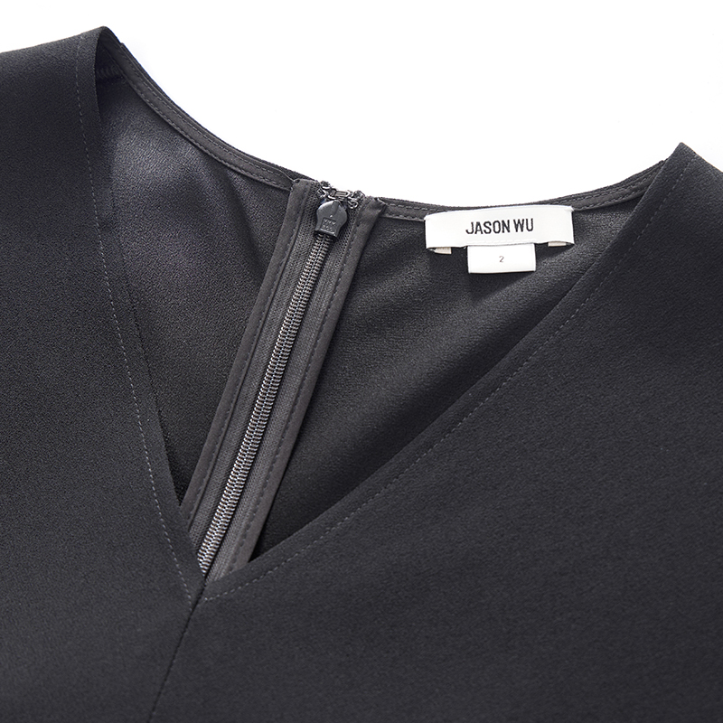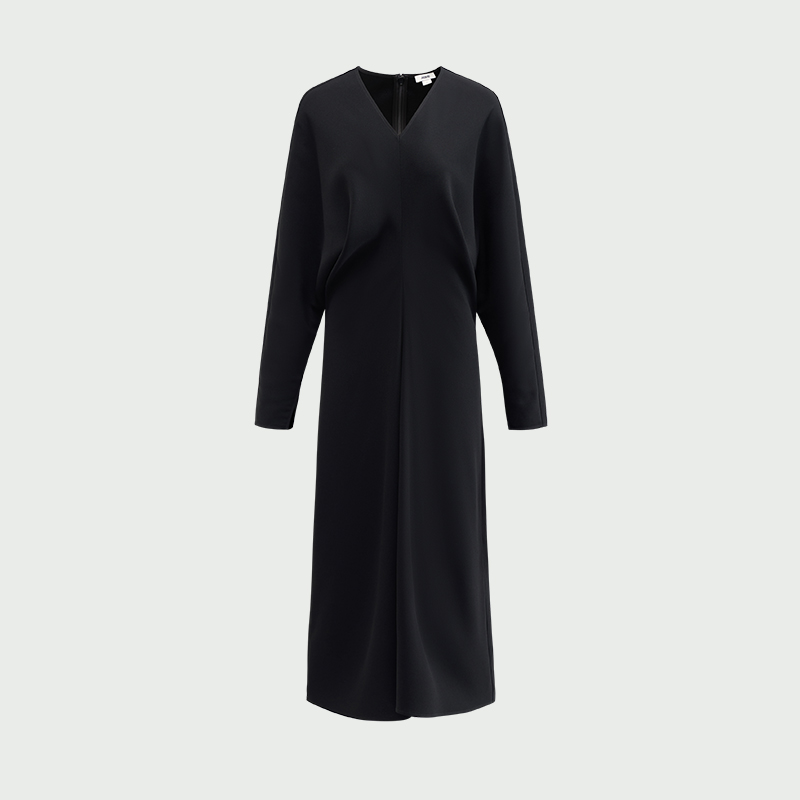 纯色简约气质V领长袖 WU25秋冬新款 JASON 直筒连衣裙女 三醋酯