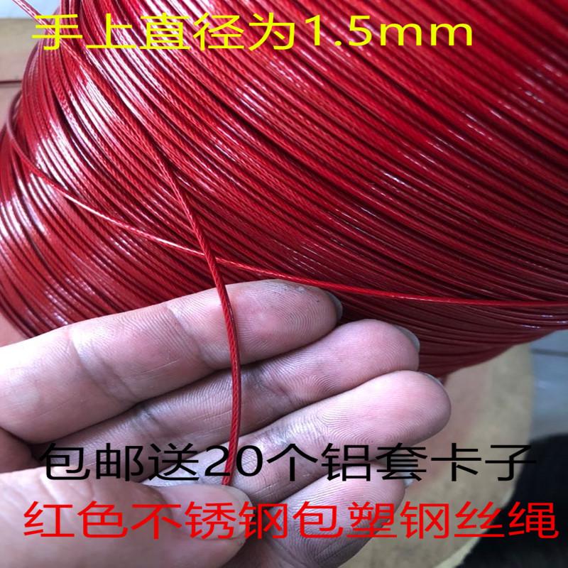 304不锈钢红绿色包塑钢丝绳直径0.38 4mm细软钓鱼线吊牌晾衣绳
