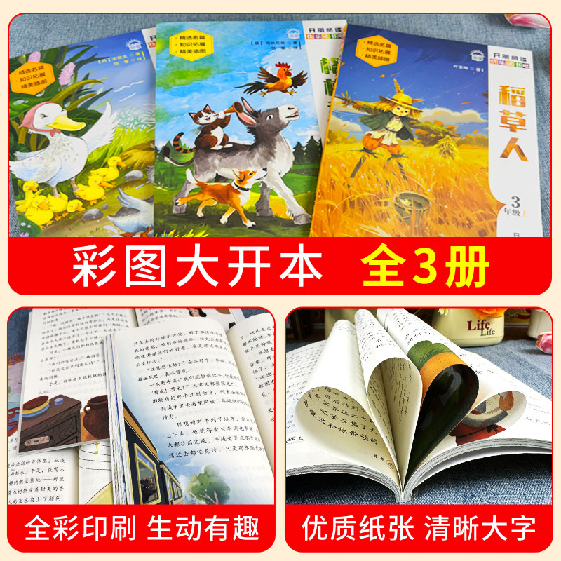 稻草人书三年级上册课外书必读快乐读书吧全套3册格林童话安徒生童话全集正版 小学生阅读书籍暑假二升三书目 叶圣陶三上语文人教版