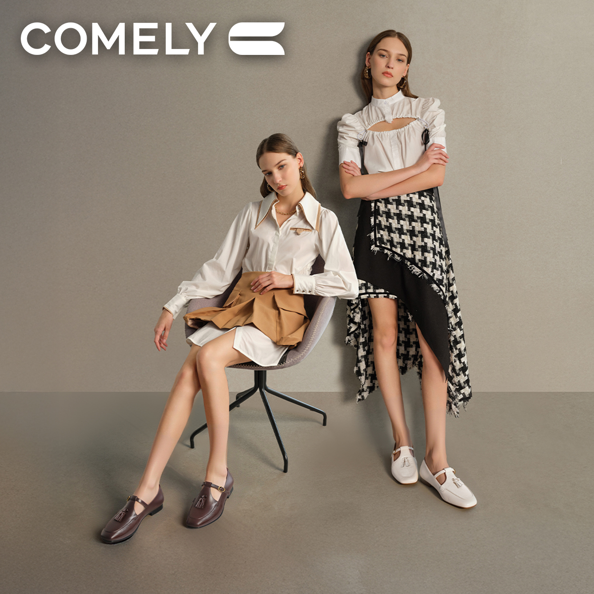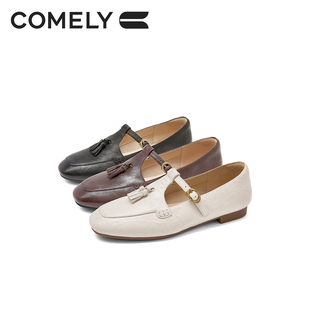 复古平底英伦设计感软底单鞋 新款 女2025年秋季 康莉流苏丁字乐福鞋