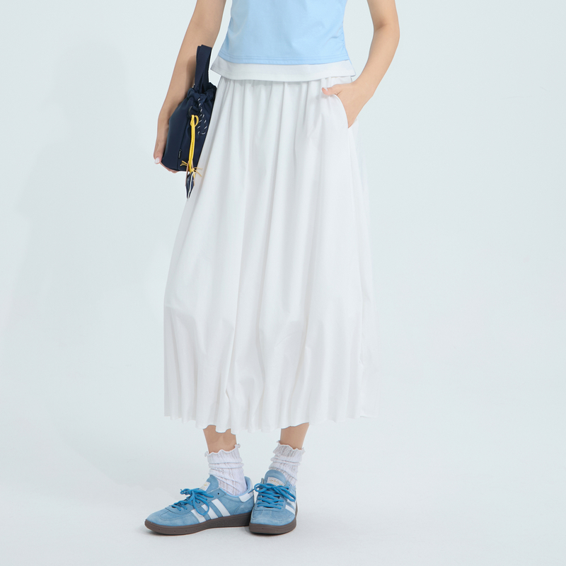 班尼路百褶半身裙女2025秋新款 小个子高腰显瘦学院风中长裙A字裙Q