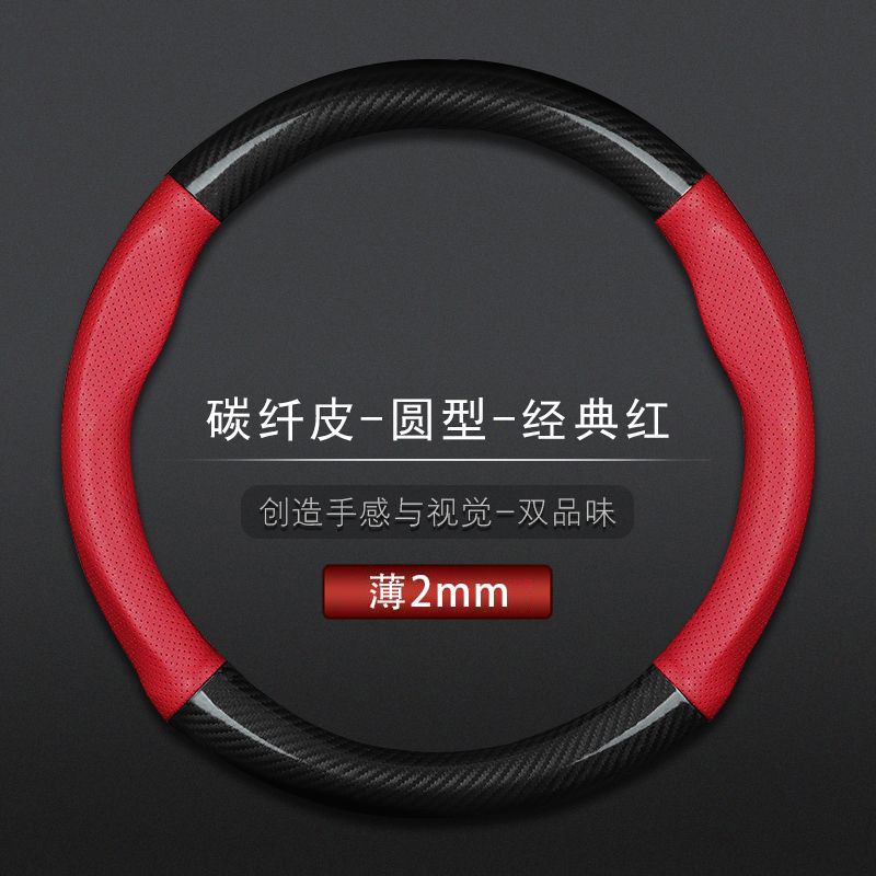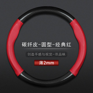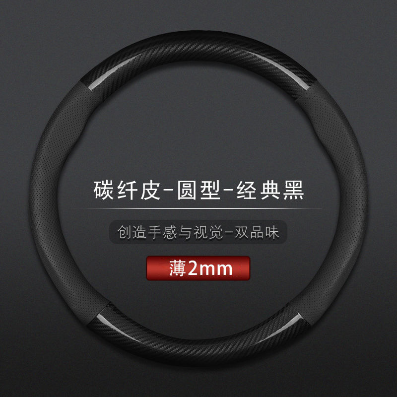 汽车方向盘套防滑吸汗超薄方向盘D型把套透气四季 通用真皮薄款