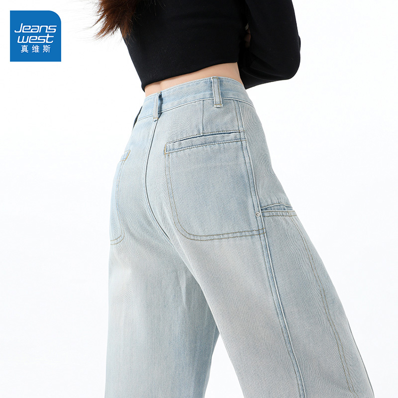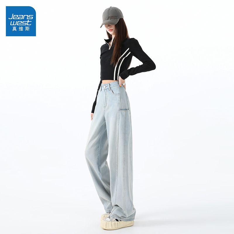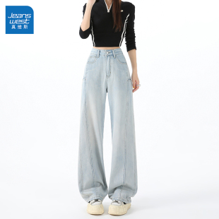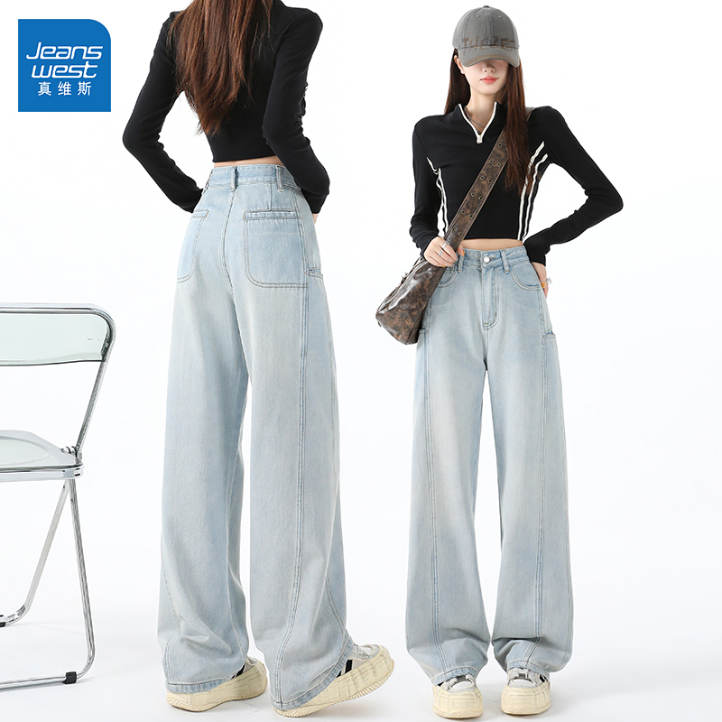 小个子休闲直筒阔腿裤 女裤 子 女2025秋冬宽松大码 娅丽达白色牛仔裤