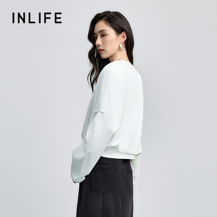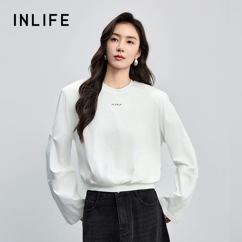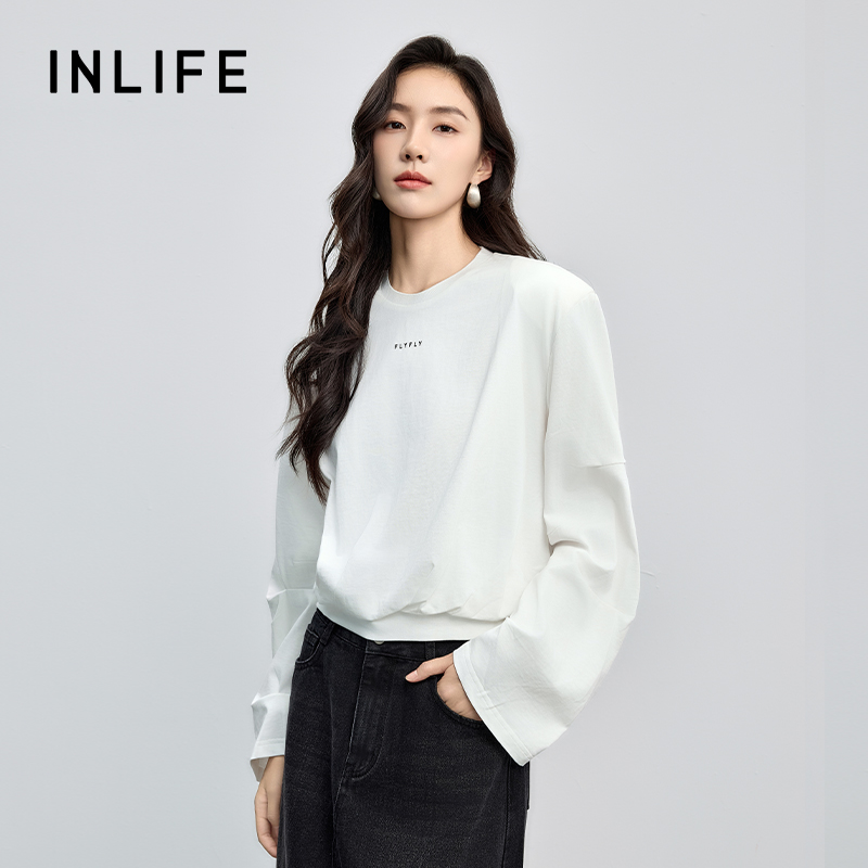 新款 伊纳芙美式 卫衣女2025秋季 长袖 圆领纯棉宽松休闲t恤 慵懒短款