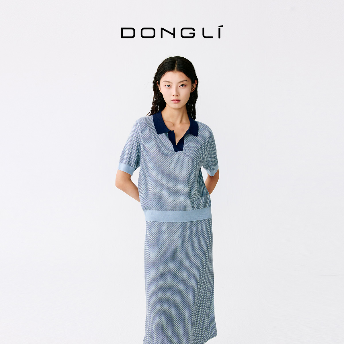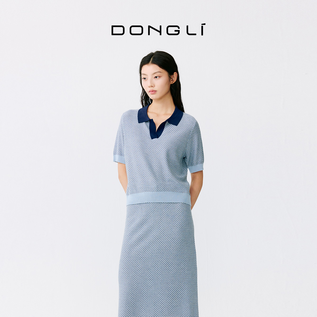 温柔 POLO领提花短袖 海风 桑蚕丝羊绒女士夏款 T5265 海纹柔 东黎