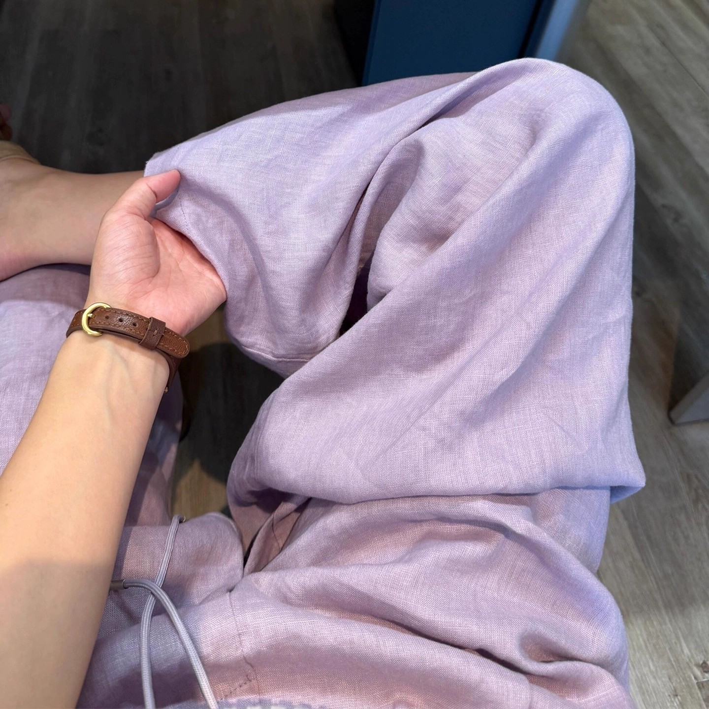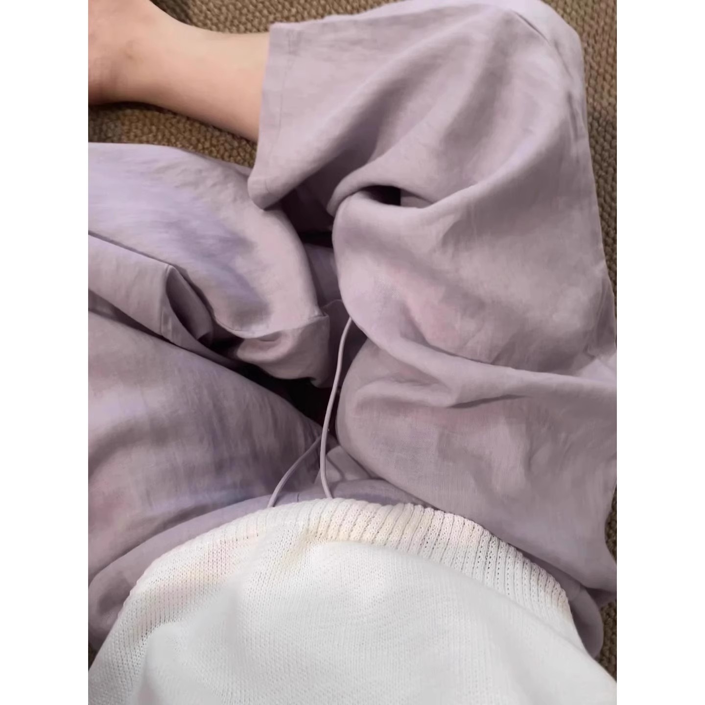 高腰宽松显瘦垂坠感冰丝棉麻直筒休闲裤 薄款 女夏季 紫色亚麻阔腿裤